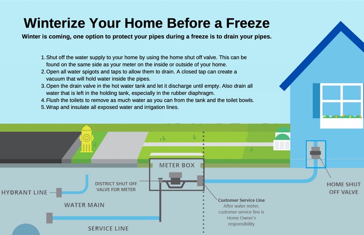 - For outdoor hoses and sprinkler systems, disconnect and drain them before freezing weather sets in.